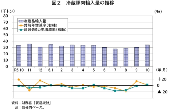 なお、過去5カ年の10月の平均輸入量との比較でも、冷蔵品は2.4%増とわずかに、冷凍品は23.3%増と大幅に、いずれも上回る結果となった。