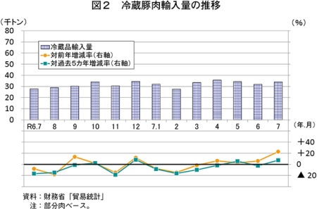 なお、過去5カ年の7月の平均輸入量との比較では、冷蔵品は7.5%増とかなりの程度、冷凍品は3.4%増とやや、いずれも上回る結果となった。
