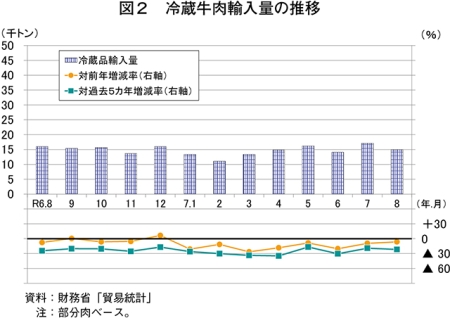 なお、過去5カ年の8月の平均輸入量との比較でも、冷蔵品は21.7%減と大幅に、冷凍品は7.9%減とかなりの程度、いずれも下回る結果となった。