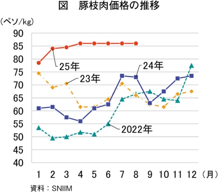 豚枝肉価格は高値で推移、25年8月は前年同月比17.8%高