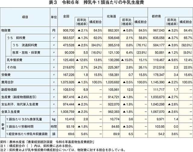 【牛乳生産費】牛乳生産費、前年比2.3%減と8年ぶり減少