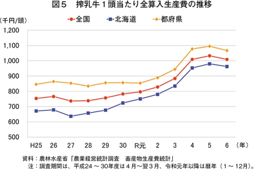 なお、10年前に当たる平成26年度と比較すると、飼料費については30.2%増、労働費については47.3%増となっている。