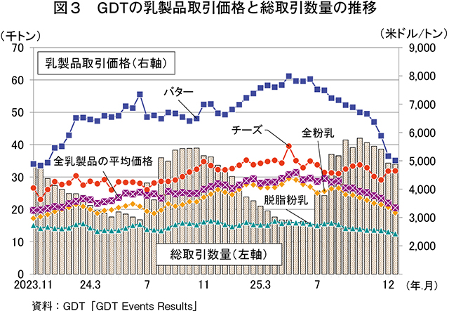 (注1)グローバルデイリートレード。月2回開催される電子オークションで、当該価格は乳製品の国際価格の指標とされている。