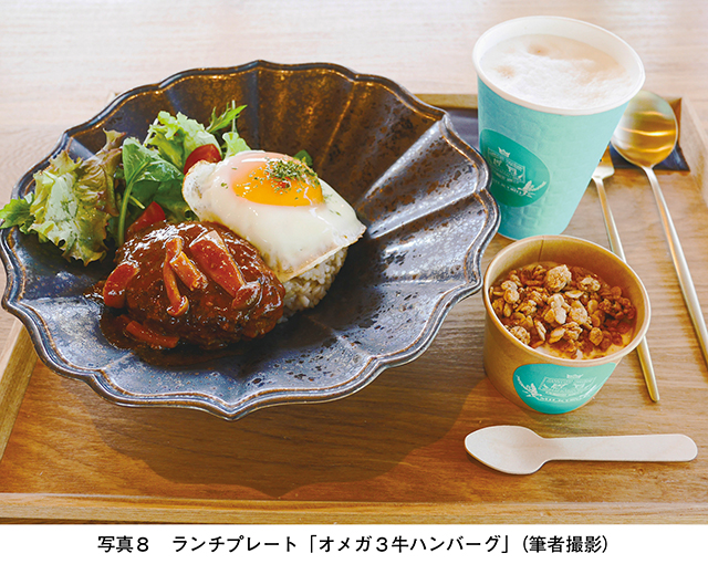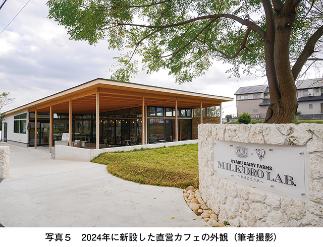 自家製造開始から3年目、前身商品をベースに改良を重ねた「半熟よーぐるちょ」に加えて、新たな看板商品「MILK’OROエイジングヨーグルト」が完成した(写真3)。ジャージー生乳とてん菜糖のみで作られ、濃厚なクリームトップと爽やかな酸味のヨーグルトが特徴のノンホモジナイズド二層式ヨーグルトである。また、「酪農家の強みは、搾った瞬間から他にはないミルクを生み出せることである」と考え、加工技術のみならず、原料乳そのものの高付加価値化にも着手した。契機は、2013年に九州地域バイオクラスター推進協議会と連携協定を結んだフランスの「ブルー・ブラン・クール(BBC)協会」との出会いである。同協会が推進する「ヘルシーファーミングプロジェクト」では、人の健康・家畜の健康・地球(土壌や環境)の健康は一体であると捉え、これに資する亜麻仁由来の飼料を推奨している。これは、畜産物の「オメガ3脂肪酸」を強化し、牛のゲップによるメタン排出量も削減できる。裕介氏は、フランス政府や国際連合にも認められたこの取り組みに共鳴し、飼料を切り替えた。さらに、海外市場の動向も敏感に捉えてA2ミルク(注3)の可能性にいち早く着目し、15年からゲノム解析による牛群選抜を開始して、約8年かけて商品化を実現した。
