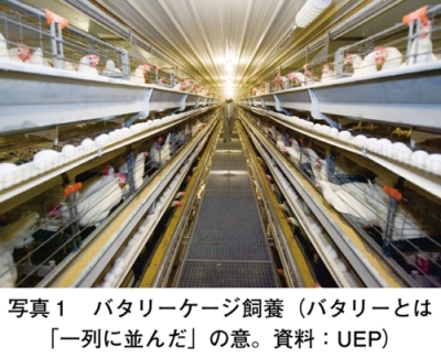 (注15)ケージ、ケージフリー、エンリッチドケージの三つの飼養形態について、AW、食品安全・品質、環境、労働者の健康・安全、価格の手頃さという五つの指標から比較分析を行っている。