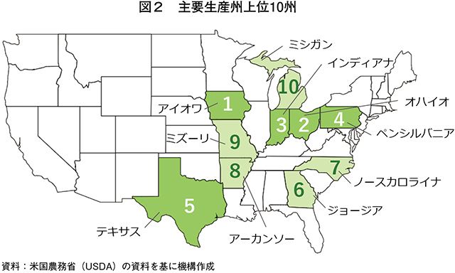 一方で、USDAは、25年7月公表予定としていたワクチン戦略を発表していないなど、進捗は不透明となっている。この背景について、国際貿易ルールとの調整、監視体制の構築、業界間の合意形成などさまざま対応が必要となることが考えられる。また、輸出に関するワクチン接種国の扱いが国単位で決定される中、輸出仕向け割合のより大きい鶏肉産業(注16)との横並びの難しさを指摘する声もある。米国におけるワクチンの検討はまだ計画の初期段階とされており、導入には相当の期間を要すると見込まれている。