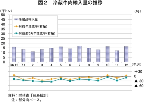 なお、過去5カ年の12月の平均輸入量との比較では、冷蔵品は8.6%減とかなりの程度下回った一方、冷凍品は13.1%増とかなり大きく上回る結果となった。