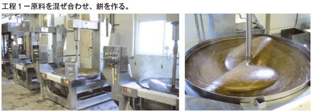 ○工程1−原料を混ぜ合わせ、餅を作る。