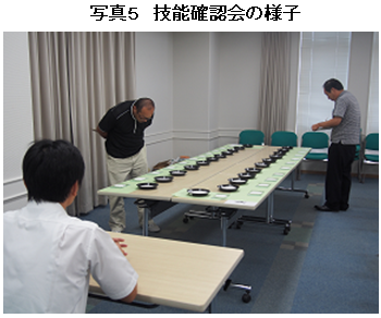 午後には、県澱連の指導的農産物検査員である玉田検査員が中心となり、かんしょ澱粉検査に関する技能確認会が行われた。同確認会では、無作為に並べられた試料と検査標準品を比較して、色沢などの品位の鑑定により等級の判定を行い、各農産物検査員の検査技能を確認した。同確認会は、一昨年前から県澱連が主催し実施しているもので、農産物検査員としての技術の維持、向上および技能確認を目的として、毎年1回以上行なっている。
