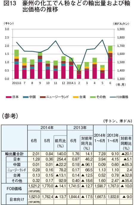 2013年9月以降、輸出需要が高まった影響で輸出価格(FOB)は上昇したが、12月から輸出量が落ち込むも高止まりで推移し、2014年4月の同価格は1トン当たり667ユーロ(9万3259円)とほぼ前月並みに落ち着いている。