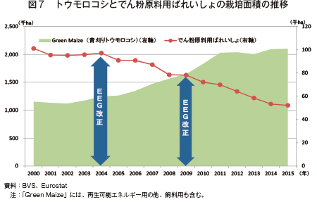 (注5)、そのうち、でん粉原料用ばれいしょは、約2割を占めており、シェアを大幅に低下させているとはいえ、でん粉原料用ばれいしょ生産国の首位の座を維持している。