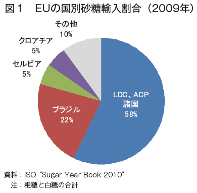 EUの砂糖需給は、近年、主要輸入先のACP諸国(EUの旧植民地であるアフリカ、カリブ、太平洋諸国)およびLDC諸国(後発開発途上国)からの輸入減少によりひっ迫した状況が続いている。この背景には、2006年に開始された砂糖制度改革のなかで、域内砂糖価格の水準が引き下げられ、さらに2009年以降、国際価格が上昇し、EUの水準を上回ったことがある。輸入の減少は、制度改革による域内生産の縮小に伴う供給減に拍車をかけることになった。