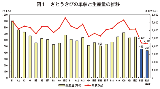 鹿児島県における平成24年産さとうきびの生産状況および実績について