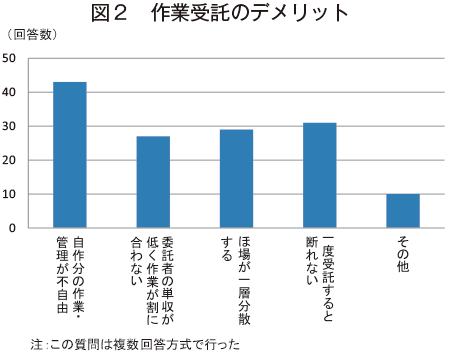 図2では、委託農家の単収が低く作業が割に合わないことや、一度受託すると断れないことが、作業受託のデメリットとして指摘されていた。