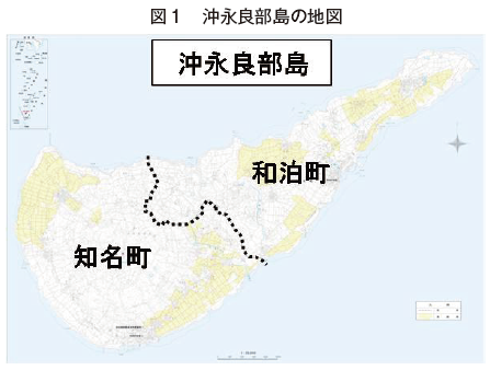 沖永良部島は、和泊町と知名町の2町からなり、鹿児島市から南南西約546キロメートルに位置する周囲約60キロメートルの隆起サンゴ礁の島である(図1)。