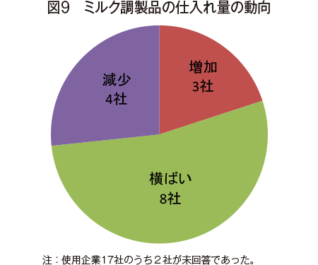 使用企業14社のうち回答のあった13社の平成26年の仕入れ量を前年と比較したところ、「増加」2社、「横ばい」9社、「減少」2社であった(