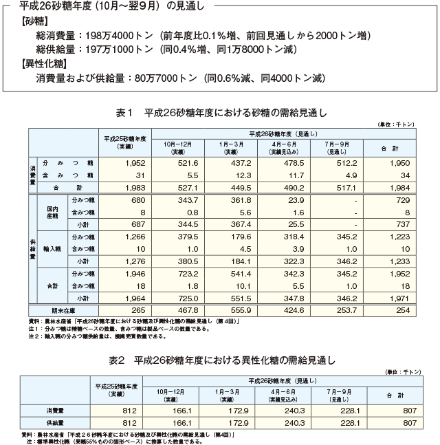 また、同月の本グラニュー糖大袋価格(日経相場)は、東京は同190〜191円、大阪は同191円、名古屋は同194円と、前月と同水準で推移した。