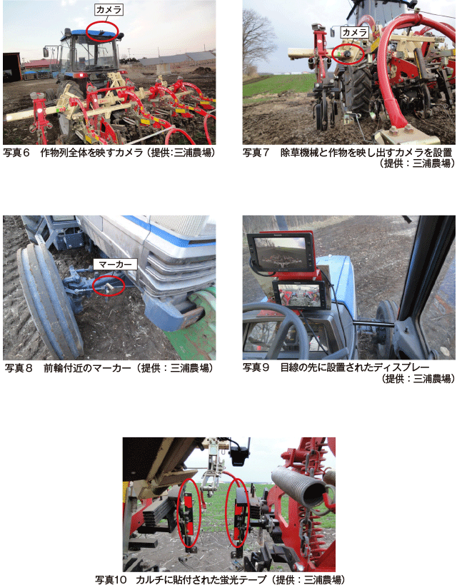 中耕・除草作業用機械のカルチベーター(以下「カルチ」という)の運転には高度な技術が求められることから、トラクターの操作に慣れた作業者が運転し、カルチにより除去しきれなかった雑草を、別の作業員がホー除草をするというのが一般的である。三浦農場では、カメラを装着するなどの工夫により、誰でもカルチの操作を行える作業体系を実現している。