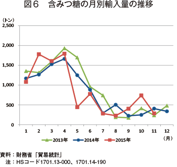 表1)。内訳を見ると、分みつ糖が191万2000トン(同2.0%減)、含みつ糖が3万4000トン(同9.7%増)であった。