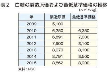 インドネシアでは、政府が基本的に年に一回、白糖の最低基準価格を公表する。この基準価格は、サトウキビ生産者の収入を確保し、サトウキビ生産を促進する手段として設けられており、政府系調査機関による生産コストなどのデータを基に決められている。前述の通り、サトウキビ取引価格を算出する式にも、白糖の最低基準価格が含まれるため、政府によって最低基準価格が引き上げられれば、基本的にはサトウキビの取引価格も上がる仕組みとなっている。ただし、白糖の最低基準価格はあくまで「基準価格」にすぎず、実際の白糖の売り渡し価格は、製糖企業が行う入札によって決まるため、白糖の落札価格が最低基準価格を下回ることもある(図10)。白糖の落札価格が最低基準価格を下回った場合、政府は、インドネシア精製糖協会(AGRI)や白糖の輸入許可を得ている製糖業者に差額分の負担を課している。