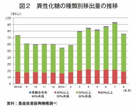 8月の異性化糖の価格(日経相場、大口需要家向け価格、東京、タンクローリーもの、JAS規格品、水分25%)は、次の通りであった。