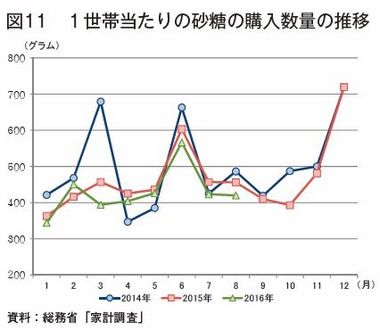図10)。また、同月の1世帯当たりの砂糖の購入数量は、420グラム(同7.9%減、同0.7%減)となった(