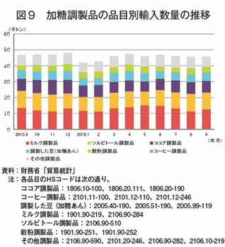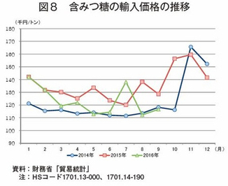 2016年9月の1トン当たりの輸入価格は、11万6572円(前年同月比9.4%安、前月比3.9%高)となった(図8)。