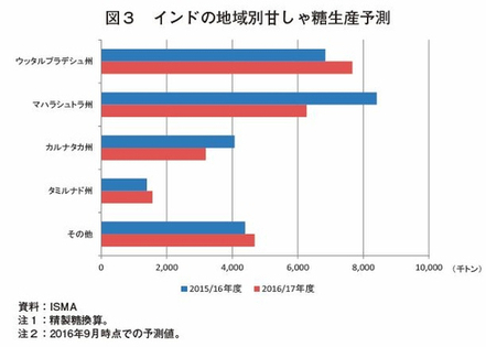 3. 世界の砂糖需給に影響を与える諸国の動向(2016年11月時点予測)