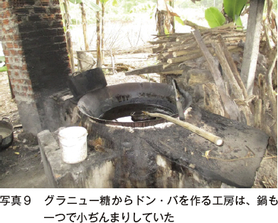 クアンナム省ホイアンから車で1時間ほどのクエソン村にて18年前に採録した、現地で「ドン・バ」と呼ばれる半円球状の分蜜しない砂糖の製造法を紹介しよう。