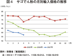 2017年4月の1トン当たりの輸入価格は、7万1053円(前年同月比36.0%安、前月比25.6%安)と、前年同月および前月から大幅に下落した。