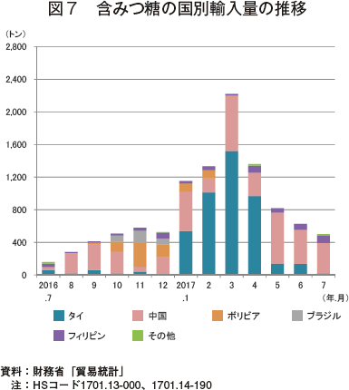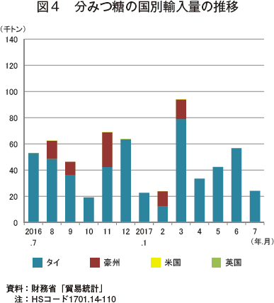 砂糖、異性化糖ともに前月と同水準で推移