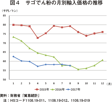 2017年8月の1トン当たりの輸入価格は、8万7952円(前年同月比50.7%安、前月比18.4%安)と、前年同月および前月から大幅に下落した。