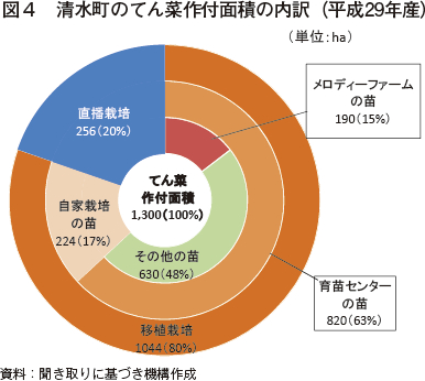 てん菜の植え付けに当たっては、ペーパーポットであらかじめ苗を育ててそれを畑に定植する移植栽培と、種子を直接畑に播く直播栽培がある。移植栽培は直播栽培に比べて収量が高く初期生育が安定しやすい反面、育苗および移植作業に時間と労力を要する。このことから、近年では、移植栽培に比べ収量は落ちるものの、育苗および移植作業に係る時間と労力が省ける直播栽培の割合が拡大傾向にあり、平成28年産は全道平均で2割に達し、清水町内でも同様の割合となっている(