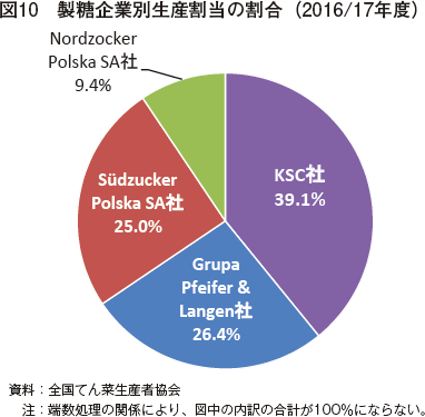コラム2〜生産者によるてん菜生産性向上の取り組み〜全国てん菜生産者協会会長のクシシュトフ・ニキエル氏は、ワルシャワから西方へ約150キロメートル離れたウッチ県クトノ周辺のカシェビ・コロニャ地域で、てん菜(約20ヘクタール)、小麦(約15ヘクタール)およびトウモロコシ(約40ヘクタール)を輪作により生産している。てん菜の収穫作業は製糖企業へ委託しているが、それ以外の作業は全て自己所有の機械を用い、父と息子の3世代で行っている。播種は、6条仕様の播種機を用いて、畝幅約45センチメートル、株間約18センチメートルで行い、緑肥としてシロガラシを植え付けるなど土壌改良にも取り組んでいる。種子は、優良品種リスト(注1)から高収量で耐病性の高いKWS社(ドイツ)、SES Vander Have社(オランダ)、KHBC社(ポーランド)の品種を選んでいる。 例年、風害は見られないが、霜害や干ばつ(注2)の他、病害虫による被害が発生している。中でも、褐斑病や萎黄病の被害が多いため、毎年、薬剤の種類を変えて防除を行っている。 2017/18年度については、他作物に比べて価格が保証されているてん菜の栽培面積を拡大させたことから、増産の見通しである。しかし、生産割当廃止に伴い取引価格が下落する懸念があるため、生産割当の廃止を契機とした増産は計画していない。同氏のように、増産に慎重な生産者も少なくないという。同氏は、生産割当廃止によって砂糖生産量が増加し、輸出量も増加すると見込む政府の予測は教科書的であり、実際には、EU域内の主要生産国が競合することになるため、今まで守られてきたEUの砂糖市場の安定性が失われるとしている。また、任意カップル支払いを含む直接支払いは、生産者の経営安定に重要な役割を果たしており、生産割当廃止後、生産者の収入の頼みとなるとみている。 (注1)製糖企業が生産者と協議し、毎年、国の中央品種研究所の種子認定検査に合格した品種から優良品種リストを作成する。生産者は同リストの中から種子を選択し、製糖企業に注文して購入する。 (注2)ポーランドでは2カ月ほど降雨が無いこともあるが、かんがいは一般的に行われておらず、野菜を主に栽培する生産者が野菜圃場とともに併用する程度しか普及していない。
