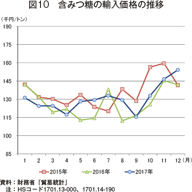 1月の糖種別・地域別の砂糖価格(日経相場)は次の通りであった。