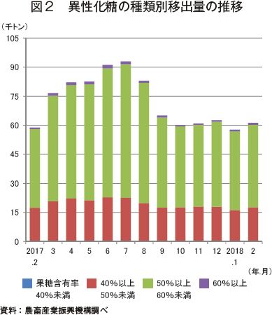 2月の異性化糖の価格(日経相場、大口需要家向け価格、東京、タンクローリーもの、JAS規格品、水分25%)は、次の通りであった。