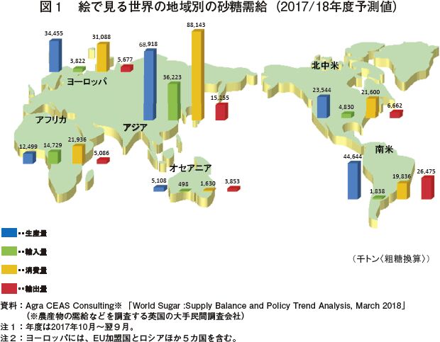 表1)。これは、主にアジアやヨーロッパなどの主要地域で増加が見込まれているためである。特に、2017年9月末に生産割当が廃止されたEUは、前年度比18.9%増と大幅な増加が見込まれている。