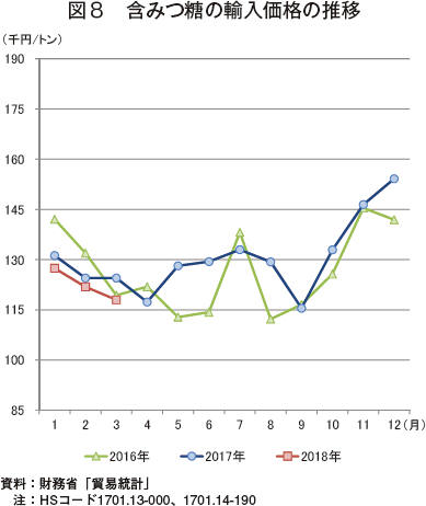 4月の糖種別・地域別の砂糖価格(日経相場)は次の通りであった。