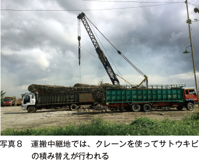 生産者は、工場から通知された稼働日の範囲内で、自らの収穫作業の進捗に応じてサトウキビを納入する(製糖工場は、搬入スケジュールを事前に把握できない)。このため、ピーク時には、製糖工場の入口に搬入のトラックが行列をなして待機するといった光景が見られることもある(写真7,8,9)。