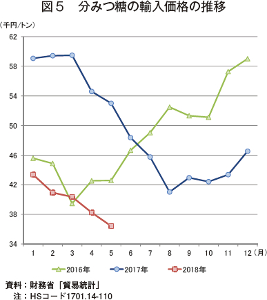 6月の糖種別・地域別の砂糖価格(日経相場)は次の通りであった。