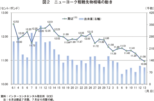 ニューヨーク粗糖相場の動き(6/1〜7/13)