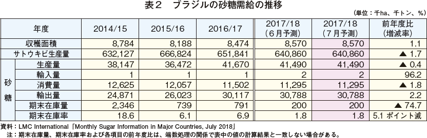 表5)。これにより、砂糖生産量は2153万トン(同22.7%増)、輸出量は359万トン(同2.4倍)と、ともに大幅な増加が見込まれている。