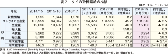 現地報道によると、タイ製糖協会も同様に、2018/19年度の砂糖生産量は、前年度をわずかに下回る見通しであるとしている。また、大幅に増加した砂糖在庫を解消するため、2018年の下半期には、600万トン程度の砂糖を輸出したいとしている。