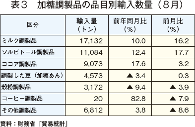 8月の加糖調製品の輸入量は前年同月からかなり増加