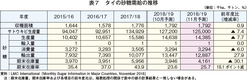 表6)。砂糖生産量は、449万トン(同0.6%増)とほぼ横ばいで推移すると見込まれている。これにより、輸出量は345万トン(同3.2%減)とやや減少すると見込まれている。