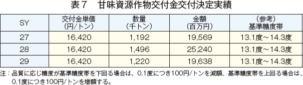 29SYは、さとうきびの減産により、交付決定数量は前年度比26.1%減の13万トン、交付決定金額は同31.2%減の78億円と大幅に減少した。