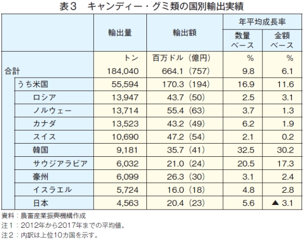 コラム2 欧州の菓子メーカーから見た日本のチョコレート市場業務用チョコレートの製造で世界最大手のB社(本社スイス)は2017年9月、ユニークな発想と長年培ってきた高度な技術を生かし、まったく新しいカテゴリーのチョコレート「ルビーチョコレート」を開発したと発表した。ルビーチョコレートは、着色料も、フルーツのフレーバーも一切使用していないにもかかわらず、明るく華やかなピンク色とベリー系の果実のような風味を感じさせる爽やかな酸味が特長で、ダーク、ミルク、ホワイトに次ぐ「第4のチョコレート」とも呼ばれている。このチョコレートを使用した商品は2018年1月、菓子メーカーのN社(本社スイス)を通じて世界に先駆け日本で先行販売され、世界中から注目を集めた(コラム2−写真)。B社の日本法人代表取締役社長は、世界初の販売先として日本が選ばれた背景について「日本の消費者は、味覚が繊細で商品に求める品質の水準も高いが、ニーズにしっかりと応えることができれば、強く長く支持してくれるのが魅力的。また、全般的に日本は購買力が高く、かつ、1人当たりのチョコレート消費量が欧米と比べ少ないことを考えると、日本のチョコレート市場はまだまだ伸びしろがある」と説明する。 ![]() 同社によると、チョコレートにも“赤ワインには肉料理、白ワインには魚料理”のような相性の良いとされる原料・素材の組み合わせがあり、ルビーチョコレートはこの組み合わせが通常のチョコレートよりはるかに多い。このため、商品開発者の創作意欲をかき立て、これまでのチョコレートの概念や用途の常識を覆すような新たな商品が生み出されると期待されている(注)。同社は、チョコレートを食べる機会が少なかった人に、より強く訴求できる商品が誕生することで日本のチョコレート消費全体の底上げを図っていきたいと考えている。 また、同社はルビーチョコレートを、自ら消費者向けの最終製品に加工して輸出・販売する計画はなく、あくまで原料として菓子メーカーや洋菓子店などへ供給するこれまでの方針を崩すつもりはないとしている。同氏は、「日本独自の技術や発想との融合により、より高い付加価値が得られると考えている。さまざまな業界・業種のパートナーと連携した多彩なアプローチによって、ルビーチョコレートの魅力を日本の消費者にアピールしていきたい」と述べた。 (注)例えば、酸味との相性が良い食材と組み合わせてソースやお酒に合うおつまみに仕上げたり、色味を生かして料理に華やかさを加えたりするなど、「菓子」という領域を超えた用途の広がりが想定される。 |