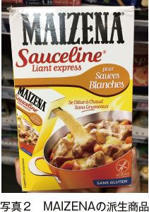 フランスのスーパーマーケットや製菓材料専門店で小売りされているコーンスターチとしては「MAIZENA」という商品が一般的で、スーパーマーケットでは調味料や製菓材料の棚に陳列されている。スープにとろみをつけるためのMAIZENAの派生商品やカスタードクリームを作るときに利用されるバニラ風味のコーンスターチ入りの砂糖など、材料としてもコーンスターチの入った製品が販売されているのが見られた。なお、MAIZENAはEUの他の国や南米諸国でも販売されているコーンスターチである。