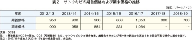 農家に支払われるサトウキビ最低取引価格は、サトウキビ・砂糖委員会(TCSB)が決定している。期首価格は、当該年度の砂糖産業全体の収益(輸出向け砂糖の平均落札価格などを基に算出)の7割(注2)をサトウキビの予想生産量で除して設定される。期末価格は、年度終了時に実績に基づき再計算した上で算出されるもので、期首価格との差額が精算される。