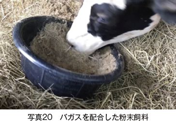 その他、バガスを配合した吸水ポリマーや家畜飼料(写真20)、フィルターケーキ、糖みつを用いたバイオ肥料(写真21)など製糖副産物を利用した高付加価値製品が製造されており、実用化に向けた試験が行われている。